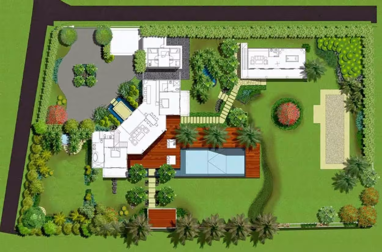 Inside, natural materials and crisp contemporary design harmonize with Balinese furnishings to create calm, light and spacious interiors. Outside, you are greeted with a guesthouse, swimming pool, pavilion and idyllic secret garden set into manicured lawns.